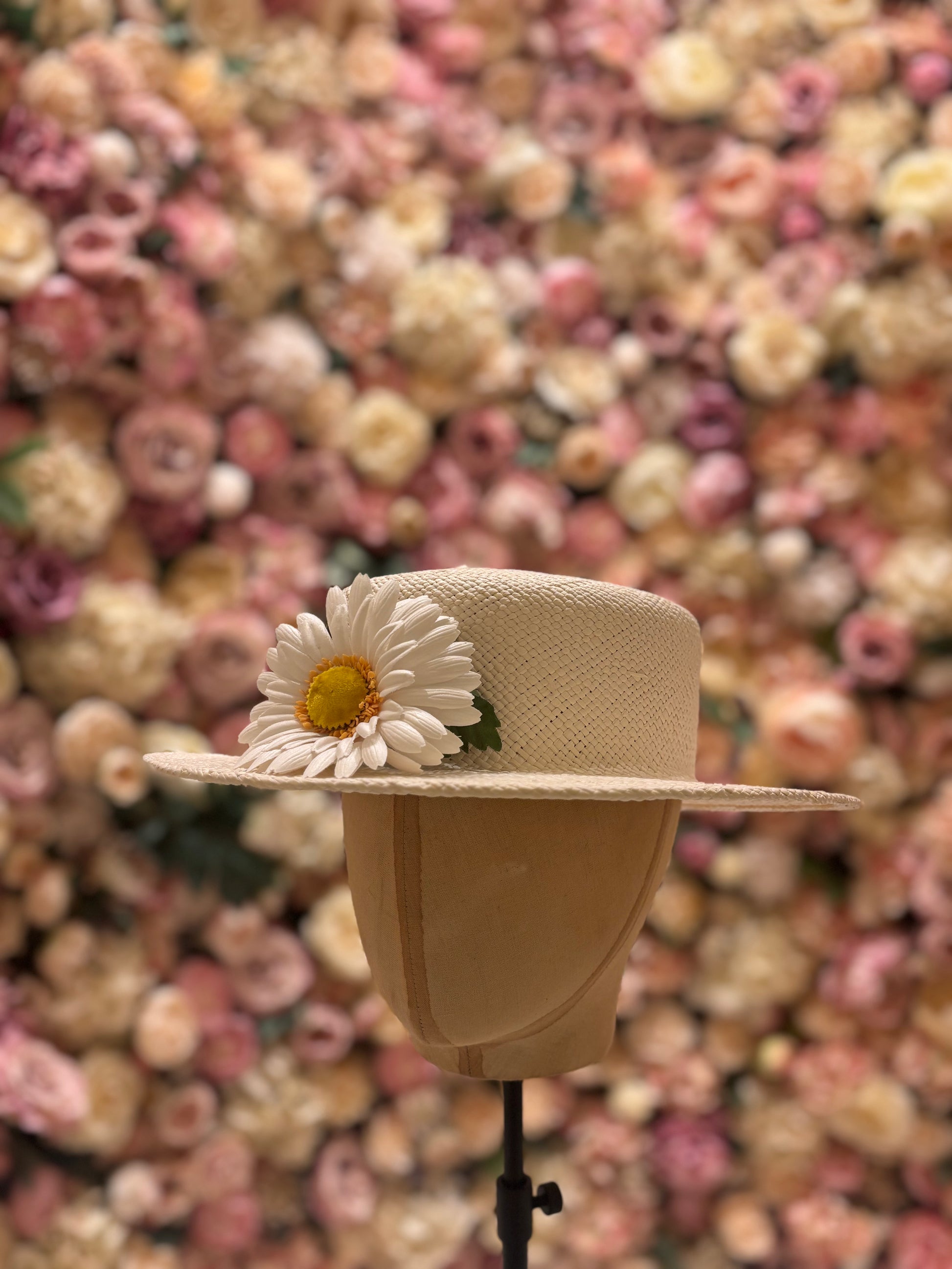 This elegant white Panama boater hat features a vintage daisy detail, blending classic style with timeless charm. Perfect for both special occasions and everyday wear, this hat adds a refined touch to any outfit while ensuring versatility and sophistication.