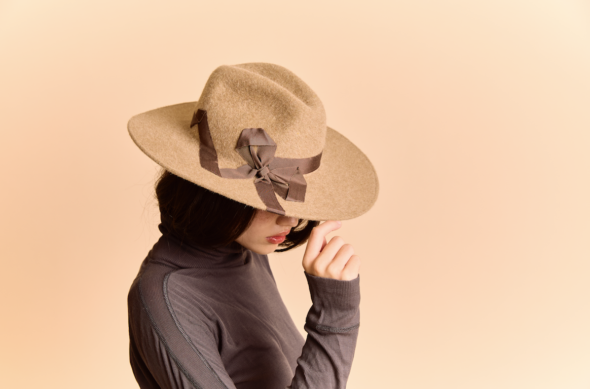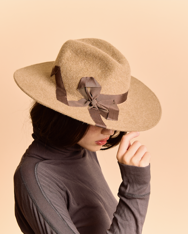 Introducing Freddie Fedora - a meticulously crafted in our Antwerp atelier using traditional millinery techniques for superior quality and craftmanschip. This elegant fedora features a sleek silhouette and a wonderfully original bow Petersham detailing.