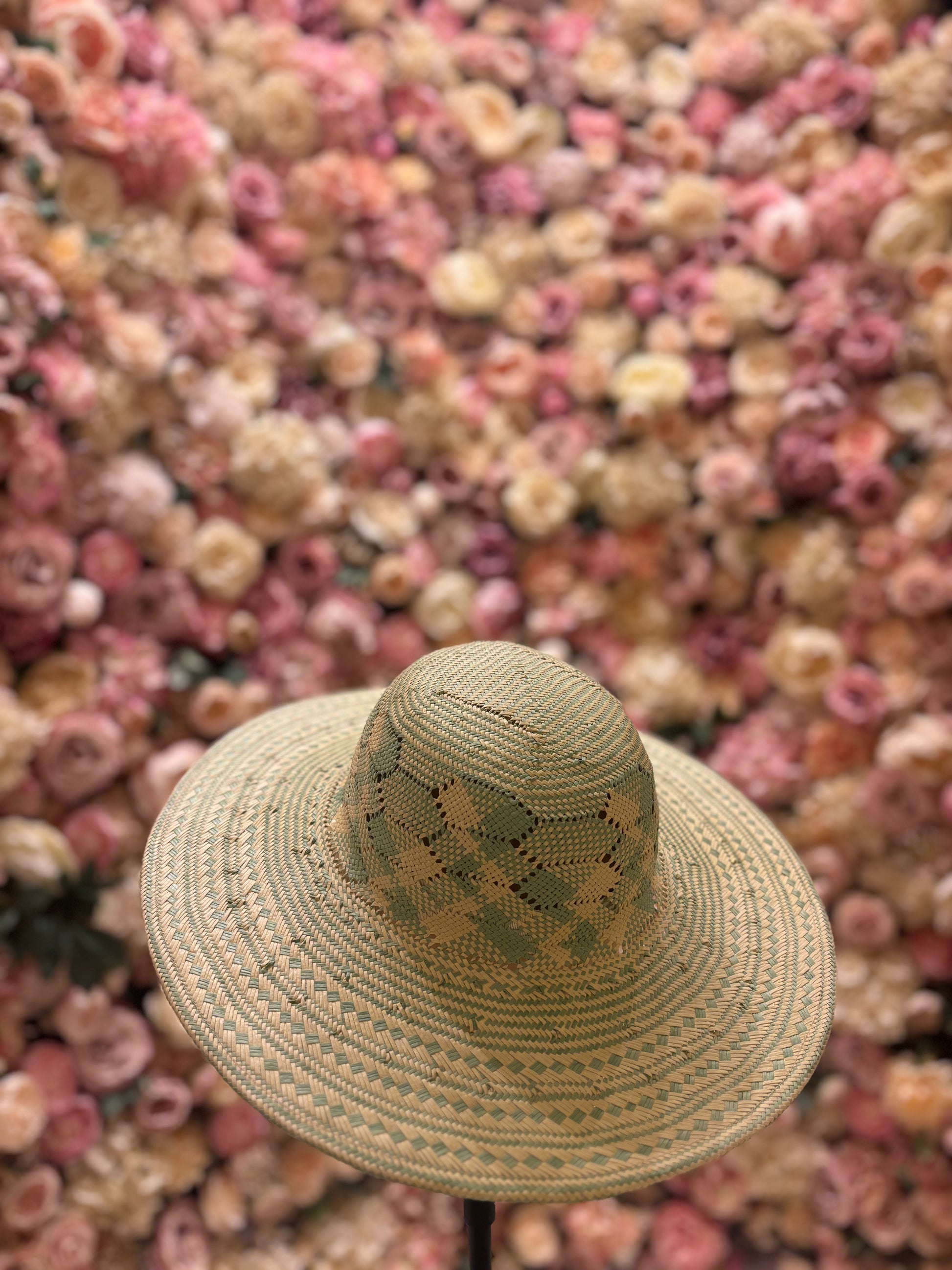 This expertly handcrafted patterned straw hat combines natural straw with refreshing mint green accents, creating a distinctive and elegant accessory. Designed to fit a 56 cm head size, it offers both comfort and style. Handmade in Antwerp, this hat reflects meticulous craftsmanship and attention to detail, making it a refined choice for those seeking a unique, high-quality summer accessory.